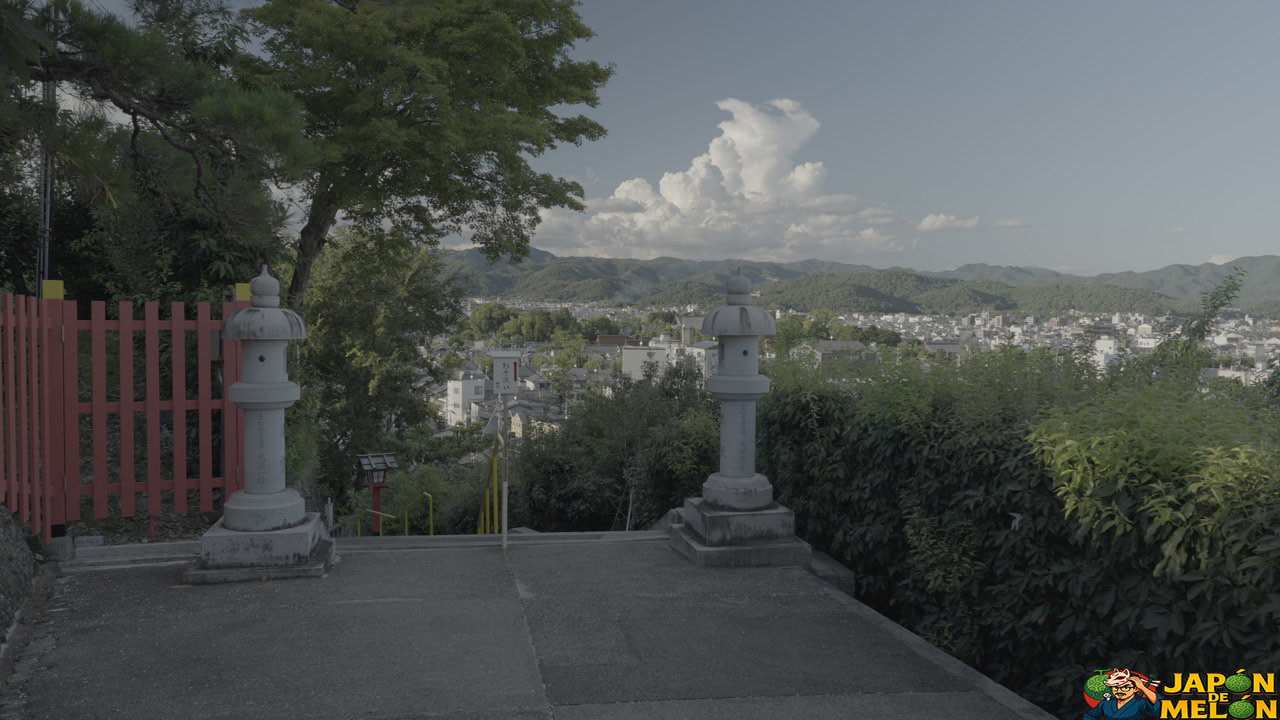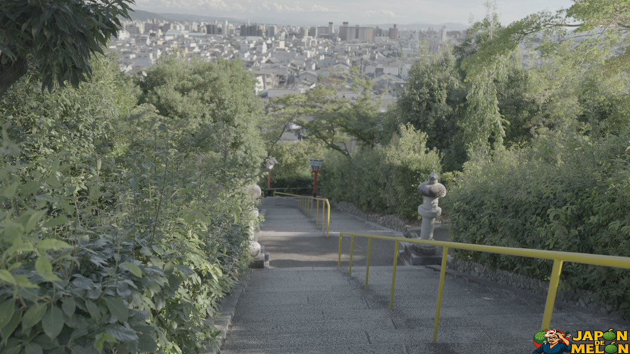 Luego ascendemos a un tercer santuario elevado, donde Kioto se abre en silencio bajo nuestros pies,